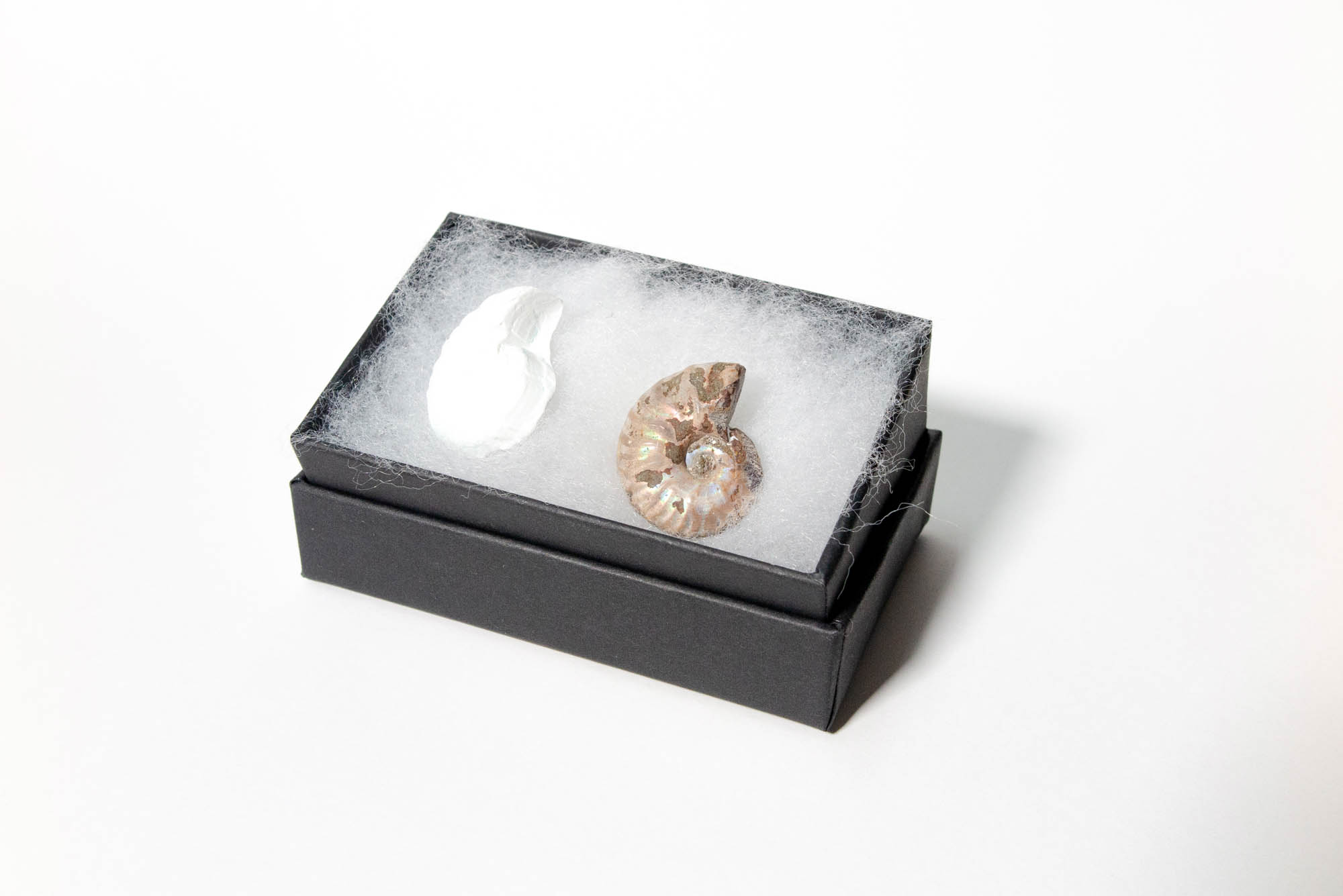とった型に石こうを流し込んで固めて、化石レプリカを作ります。